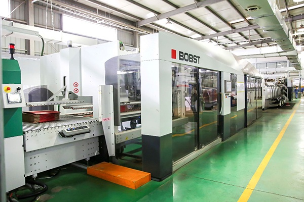 ![]() | The company has an advanced corrugated cardboard production line imported from Germany and a five-color flexo-printing box linkage line imported from France, so that the production automation control is comprehensively and effectively improved. The German BHS Star of Excellence five-layer corrugated cardboard production line is designed with a maximum speed of 300 meters per minute and an annual production capacity of 100 million square meters. This assembly line adopts the most advanced international production technology, which is highly intelligent. It is equipped with QDM, which can memorize and retrieve the production data of the order to ensure stable operation. At the same time, the corrugated roller adopts the chuck installation and peripheral heating method, and the corrugated roller can be replaced the fastest 15 minutes, greatly improving the corrugation efficiency. French BOBST (Boost) FFG 8.20 automatic carton linkage line, the production speed can reach 24,000 cartons / hour, only 3 people can easily operate the machine, is the first domestic carton linkage production line of this model. The entire line has a fast setting function, which can complete the order change in only 1-2 minutes. It can slot the box with ultra-efficient production rules. It has a SOC function (the order is automatically in place after the previous order is completed), five-color printing, and automatic printing error correction. Features. |